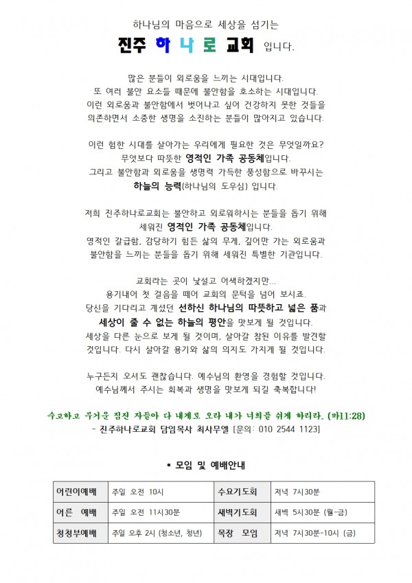 • 후원계좌: 농협 355-0080-8181-33 진주하나로교회